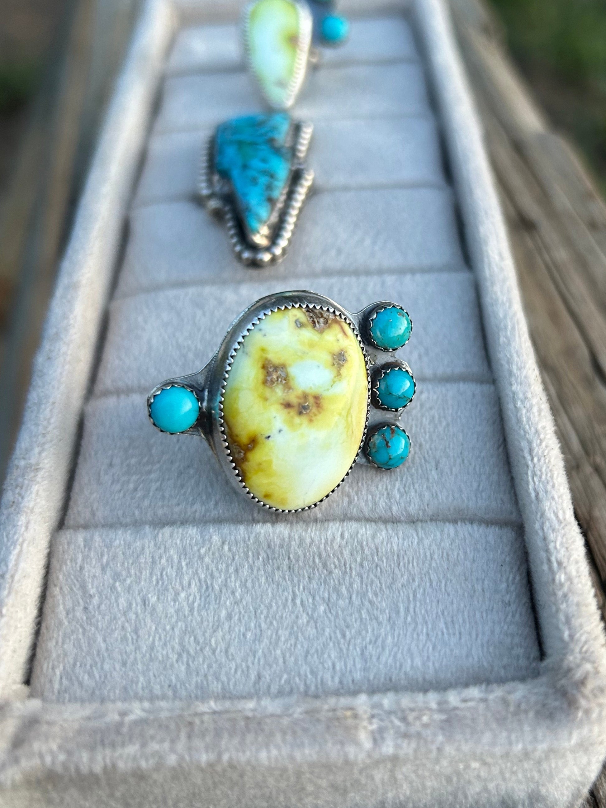Palomino and 4 Sonoran stone Turquoise Ring.